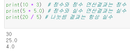 2.정수와 실수의 연산결과는 실수가 나옵니다.