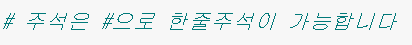 주석(Comment)를 할때에는 # 으로 한줄 주석이 가능 합니다