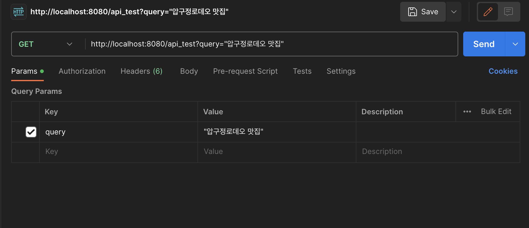 // 친절히 API URL 이 제공이 되고 필수인 query 가 Param 으로 되어있다.