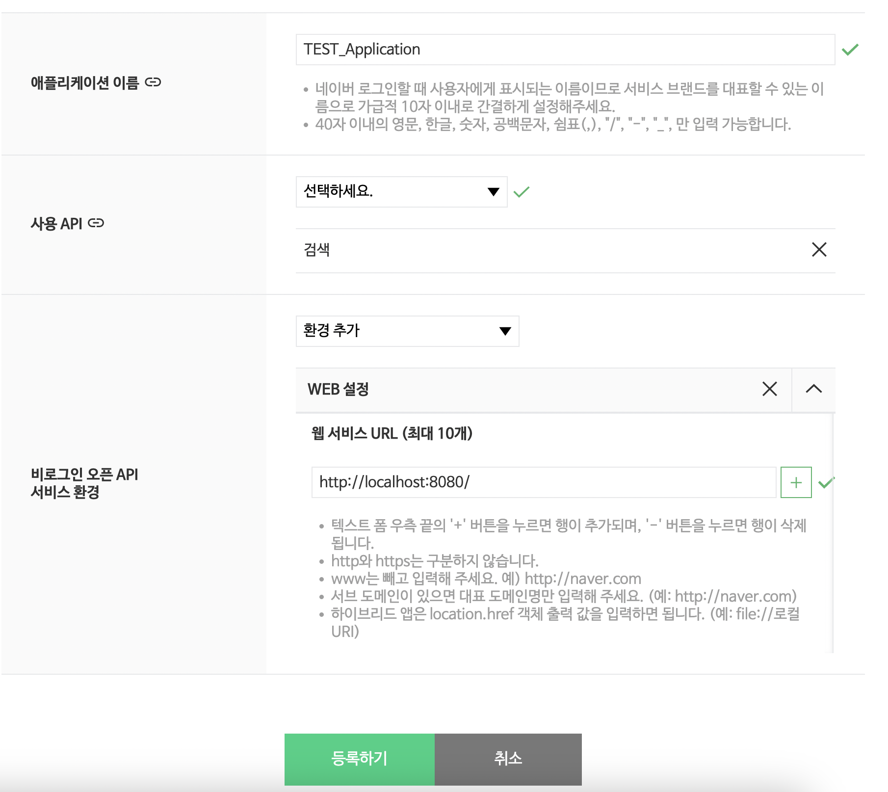 1. 네이버 개발자센터에서 애플리케이션을 등록