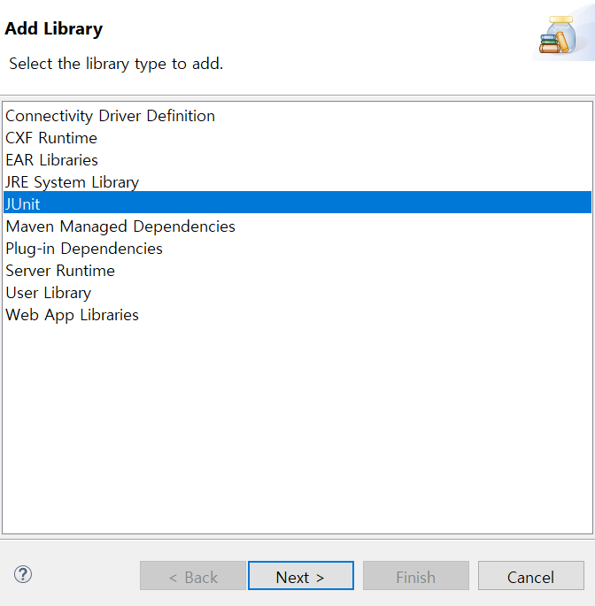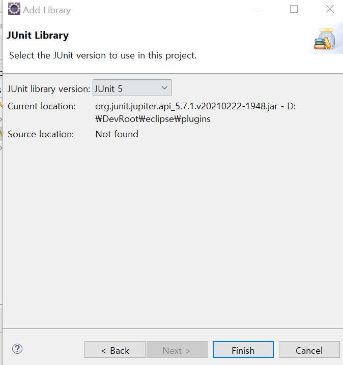 저는 Jnuit5 버전을 선택하고 Finish 하겠습니다.